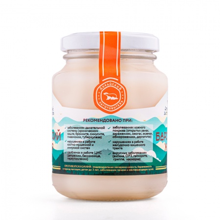 Готовый жир разливается в банки объемом 100 и 250 мл и хранятся в холодильнике до отправки заказа. Стоит отметить, что в зависимости от характера местности и особенностей питания цвет жира может несколько отличаться.
