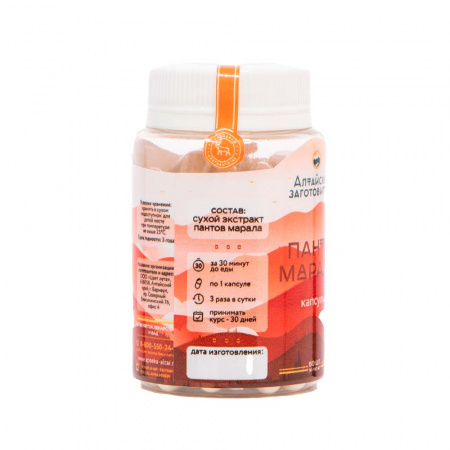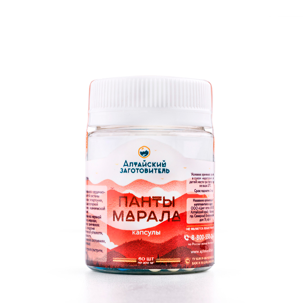Панты марала в капсулахПанты в капсулах – один из самых простых способов приема этого продукта. Их удобно брать с собой в дорогу или на работу. Ими легко мерить дозировку. Мы выпускаем капсулы в упаковках по 30 и 60 шт. Капсул в упаковке 60 шт хватает ровно на один курс приема. В наших капсулах содержится только 100% сухой экстракт без дополнительных добавок, консервантов или красителей.